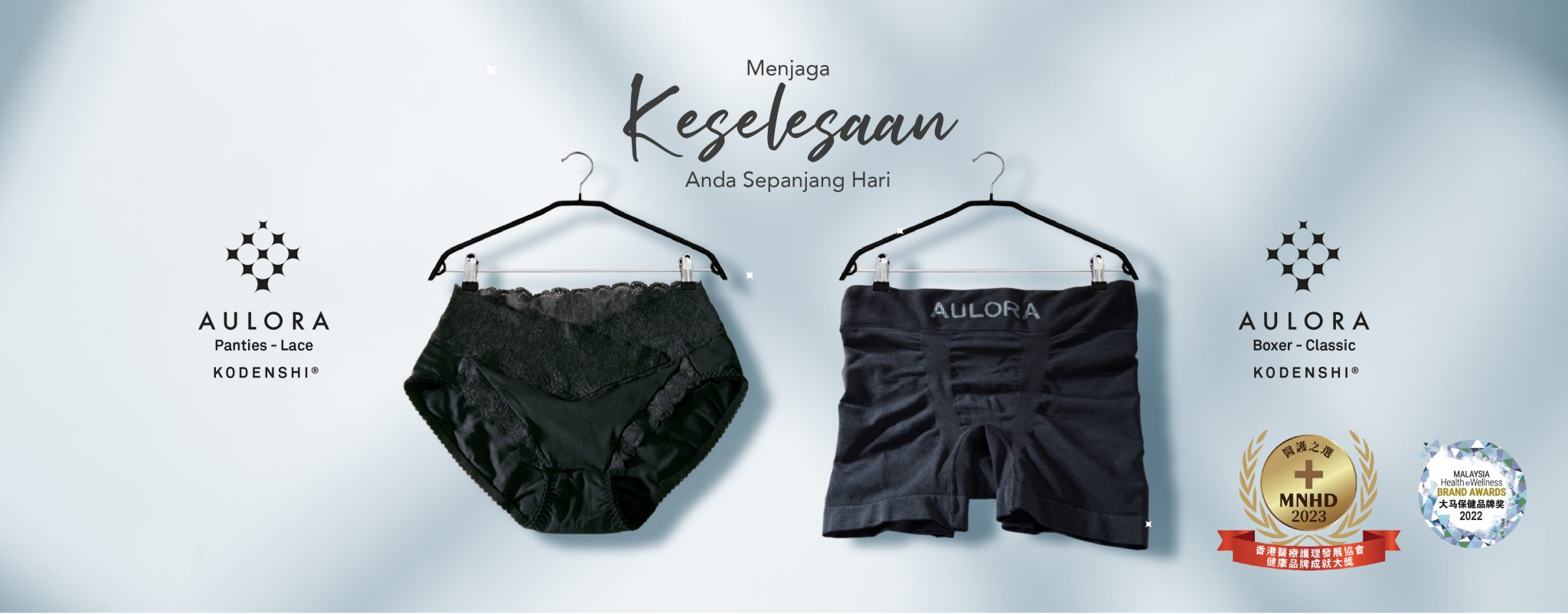 AULORA Panties with KODENSHI® – Lace dan AULORA Boxer with KODENSHI® – Classic merupakan kombinasi sinergis antara kenyamanan dan gaya. Dibuat dengan KODENSHI® Fiber kelas dunia, item pakaian intim yang dirancang khusus ini memberikan efek pengangkatan selain penyangga yang tahan lama dan holistik. Kain ini hadir dengan fungsi penyerapan kelembapan yang sangat baik dan sifat anti bau, memungkinkan Anda untuk tetap segar sepanjang hari dan malam. Selain itu, desain Jahit 3D memberikan penutup pinggul lengkap dengan sentuhan yang nyaman.