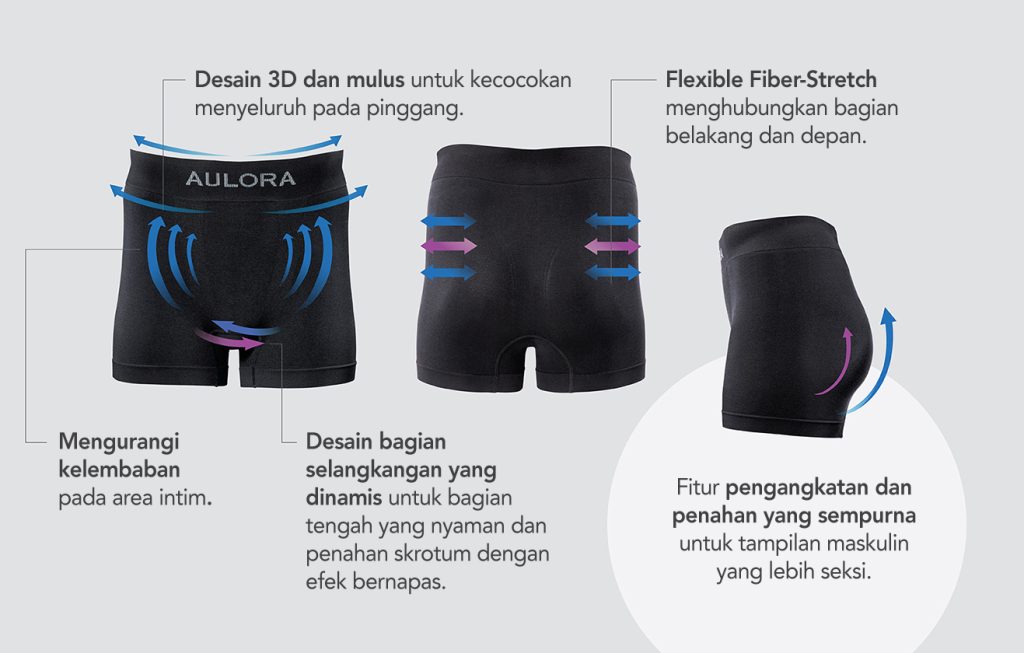 Renda bergaya dan sederhana yang dijahit pada AULORA Panties with KODENSHI® – Lace memberikan tampilan elegan yang modis, sedangkan AULORA Boxer with KODENSHI® – Classic yang mulus dan dapat direntangkan menciptakan siluet maskulin yang kuat.
