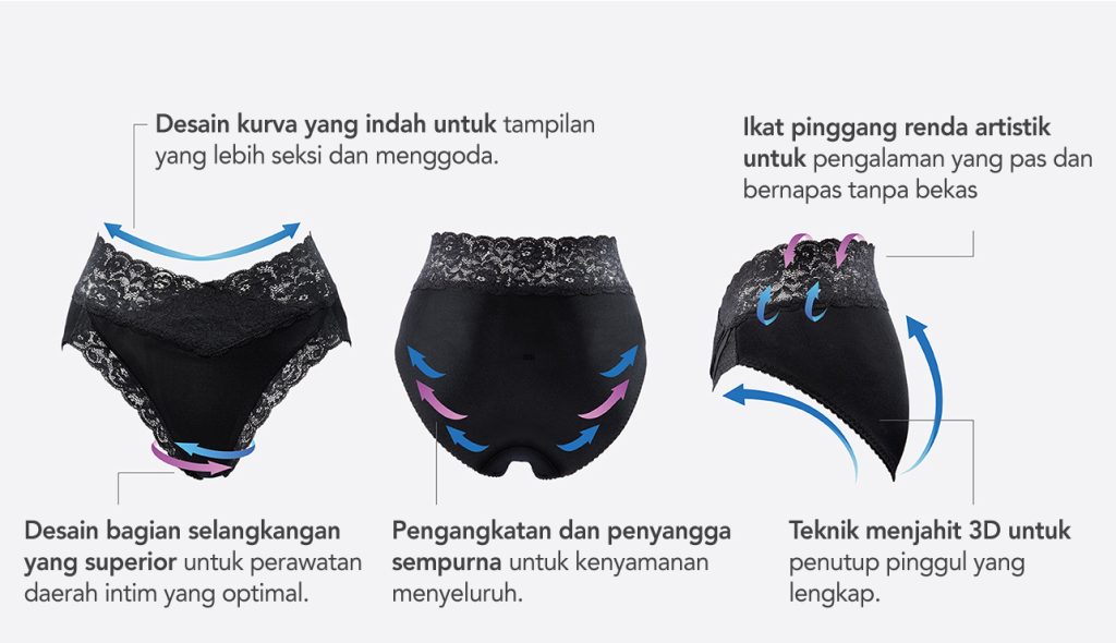 Teknik DESAIN & JAHIT 3D canggih untuk kecocokan menyeluruh yang sempurna. Lembut dan nyaman untuk kulit Anda untuk pemakaian sepanjang hari.